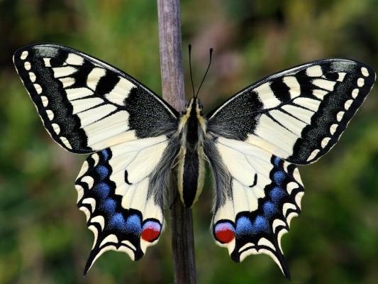 - Der Schwalbenschwanz (Papilio machaon) ist auf Magerwiesen und in Gärten weit verbreitet. Die Eier werden an Doldengewächsen wie z.B. der Wilden Möhre, die hier häufig vorkommt, abgelegt (Foto: cc 3.0, hamon jp).