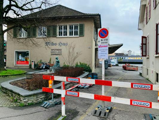 Anfang Februar haben die angekündigten Bauarbeiten am MiBo-Platz begonnen. Aller Voraussicht nach können daher die Parkplätze bis und mit Ende März nicht genutzt werden. Gerne machen wir die Bevölkerung darauf aufmerksam, dass es in unmittelbarer Nähe des Platzes öffentliche Parkiermöglichkeiten (blaue Zone) gibt. So befinden sich Parkplätze neben dem Bottminger Zentrum (Therwilerstrasse 14) sowie vor der Gemeindeverwaltung (Schulstrasse 1). Ferner stehen ca. 400 Meter entfernt an der Therwilerstrasse Richtung Oberwil weitere Parkplätze zur Verfügung. Während der Bauarbeiten wird die Umleitung der Fussgängerinnen und Fussgänger signalisiert.