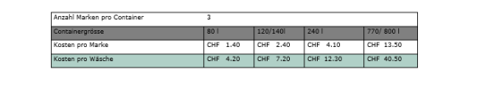 Bitte beachten Sie, das pro Wäsche je drei Abfallmarken verwendet werden: