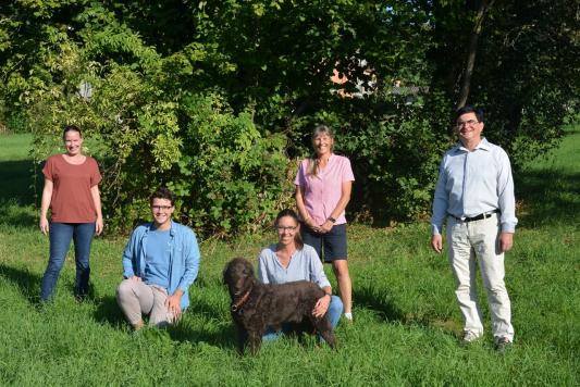 Auf dem Foto zu sehen sind Christian Caderas (Gemeinderatsmitglied), Pamela Fischer (Präsidentin), Sarah Huber mit Hund Chess, Shane Zutter, Sandra Thomann (Aktuarin) (v.r.n.l.).