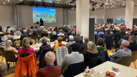 Am Montag, den 27. März, führte der Kanton Basel-Landschaft zusammen mit der BLT und der Gemeinde Bottmingen einen öffentlichen Anlass zur geplanten ÖV-Drehscheibe beim jetzigen Busbahnhof und der Tramhaltestelle «Bottmingen Schloss» durch. Die Bevölkerung war herzlich eingeladen, am Informations- und Dialoganlass teilzunehmen und dabei Fragen, Wünsche oder Bedenken aktiv einzubringen. Erfreulicherweise folgten sehr viele Interessierte der Einladung – rund 340 Personen fanden sich in der Aula des Schulhauses Burggarten ein.
