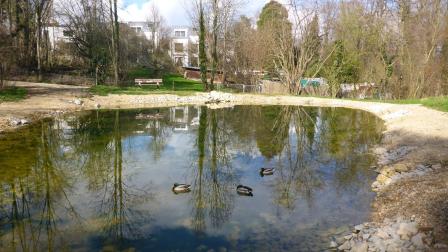 Die Sanierungsarbeiten zur Wiederherstellung des Wasserspiegels im Weiher des Naturschutzgebiets Kreuzacker/Fuchshag konnten erfolgreich abgeschlossen werden. Der Weiher, der im Spätsommer 2022 plötzlich austrocknete und bedrohlich niedrige Wasserstände aufwies, ist nun wiederhergestellt, dicht, gefüllt und mit neuer Bepflanzung versehen. Allmählich kehrt wieder Leben in den Weiher zurück. Die ersten Amphibienarten sind schon eingetroffen und haben begonnen, ihren Laich abzulegen. Dies ist ein ermutigendes Zeichen für die erfolgreiche Wiederherstellung des natürlichen Lebensraums. Weitere Arten, die erst im späteren Frühjahr laichen, werden mit Spannung erwartet.