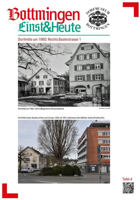 Die Bevölkerung Bottmingens ist in den letzten Jahrzehnten kräftig gewachsen. Das hat das Dorfbild entsprechend geprägt und vor allem verändert. Eine Fotoausstellung des Dorfmuseums stellt Fotografien von früher und von heute gegenüber und führt so vor Augen, wie sehr sich die Zeiten geändert haben. In der Bibo-Ausgabe vom 4.4.24 wird über dieses Projekt ausführlich berichtet.