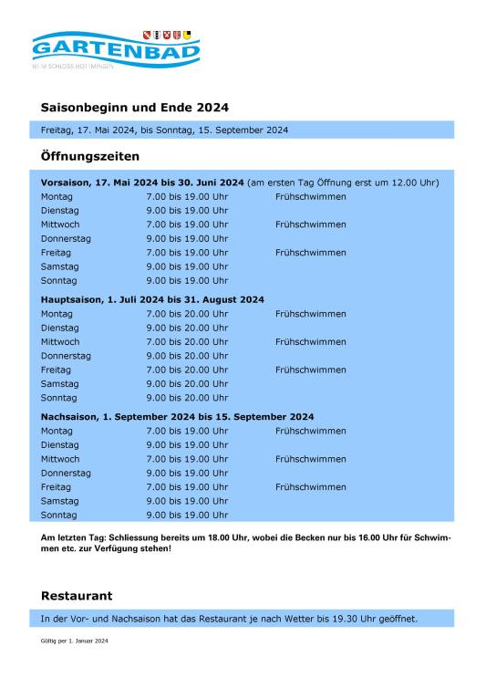 Gartenbad: Saisonbeginn am 17. Mai