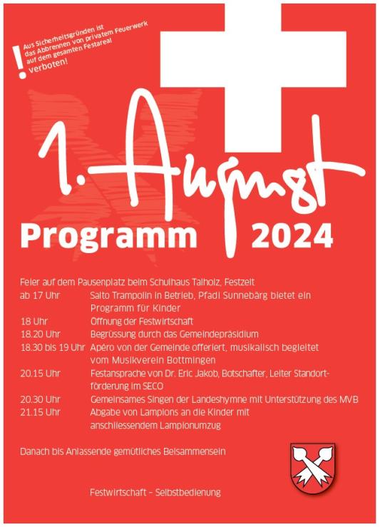 Ab 17 Uhr stehen wir für alle bereit, die die 1. Augustfeier aktiv erleben wollen. Ihr findet uns vor der Turnhalle des Hämisgarten-Schulhauses. Kommt vorbei und feiert mit uns den Nationalfeiertag in Bottmingen!
