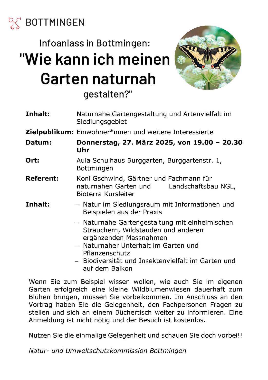 Infoanlass Bottmingen: « Wie kann ich meinen Garten naturnah gestalten?»