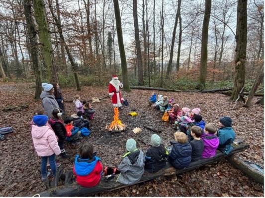 Unsere beiden ersten Klassen des Talholz-Schulhauses begaben sich am vergangenen Freitag auf den Weg, den Santiglaus im Wald zu treffen.